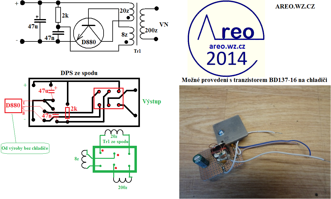 Toto je zapojení extra jednoduchého budiče 8W zářivky či CCFL. Zářivku vybudí asi z 12V a CCFL asi z 30V. Tento budič zářivku nešetří. Je to zapojení z nějakého čínského 8W zářivkového světla na 12V. Kvůli jednoduchosti zapojení ho sem ale stejně dávám, poněvadž se může někdy hodit.