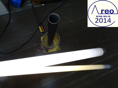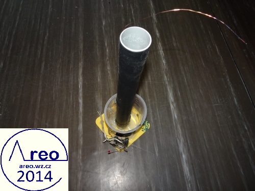 Teslův transformátor s vyladěným a spolehlivým zapojením budiče. Kdyby to po sestavení nic nedělalo, tak po zapojení primáru naopak by mělo by začít.